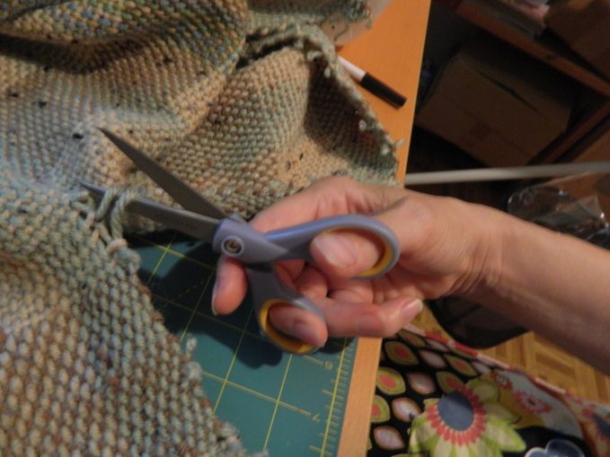Even scarier than cutting it is machine sewing it. I just knew that it would get caught up in the machine and be a mess. It didn't. Sewing along the ends so I could cut off the fringe was much easier than I ever imagined.
