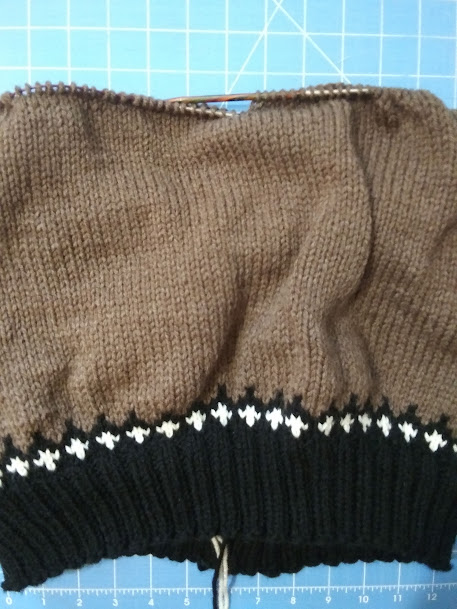 In spite of being tired at the end of the day, knitting has been happening. Musselburgh gets picked up every night but it's still not up to the 18 1/2 inches I need in order to start decreasing.