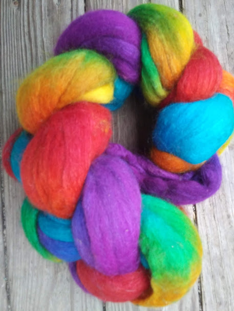 ReplyDeleteLove the rainbow yarn! It's so great. And the roving you have ready to go looks pretty interesting too. I'll bet it spins up beautifully.