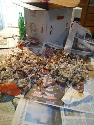 I'm not sure why because in minutes the place looks like this. I'll be sweeping up bits of crab shells for days.